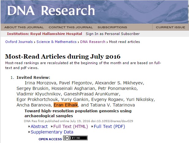 18/6/19: New popular science article: published in Ancient Origins by Elhaik
