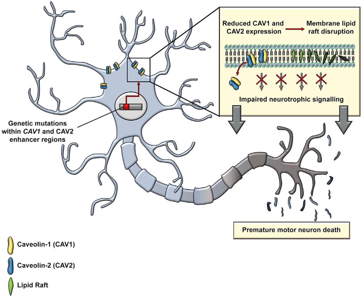 Rare variant burden analysis within enhancers identifies CAV1 as an ALS risk gene.